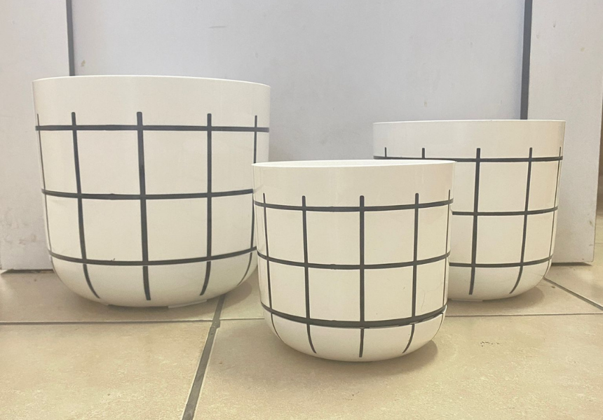 Farklı boyut seçenekleri (No:1, No:2, No:3) ile çiçekleriniz, bitkileriniz ve sukulentleriniz için ideal kullanım sağlar. Siyah ve beyazın zarif kontrastı sayesinde balkon, teras, bahçe ve ev dekorasyonunuza modern bir görünüm ekler.